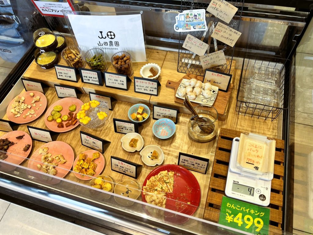 有機野菜を使った人間用のお弁当やお惣菜もレジ前に並んでいました。