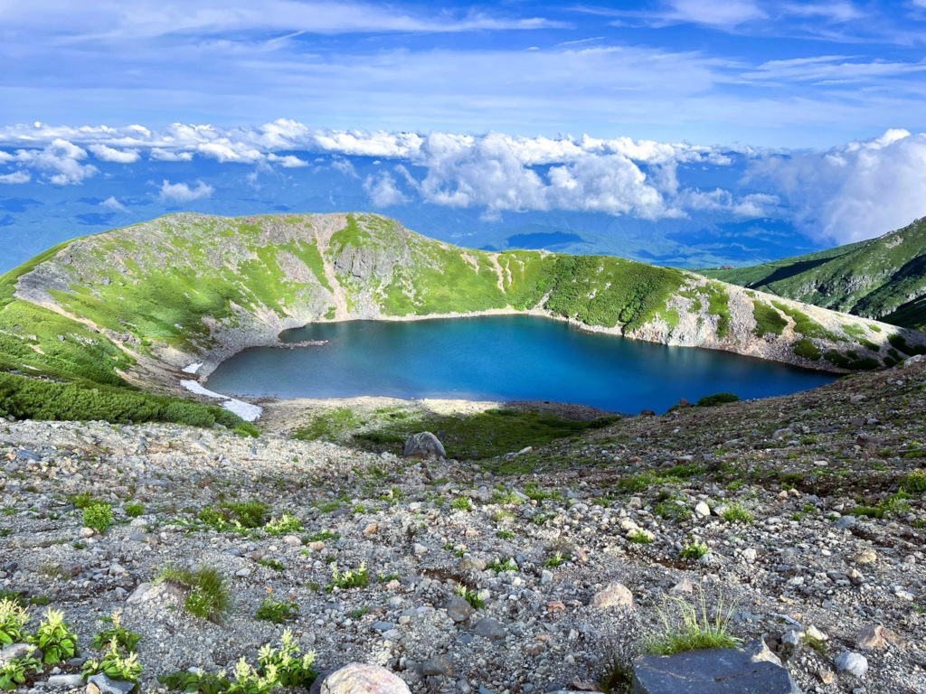 天空にぽっかり浮かぶコバルトブルーの池は、吸い込まれそうな美しさです。