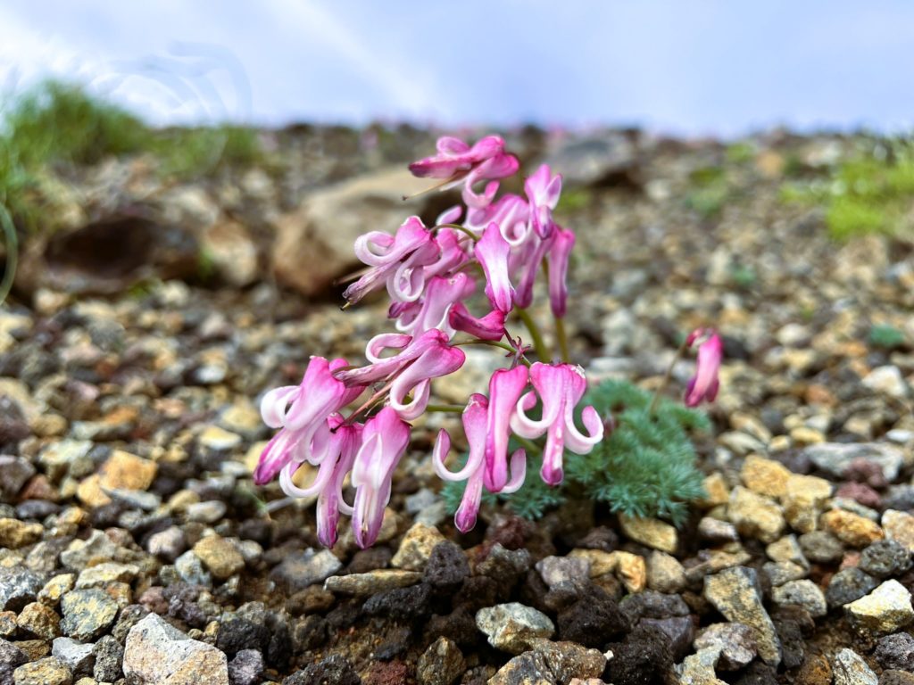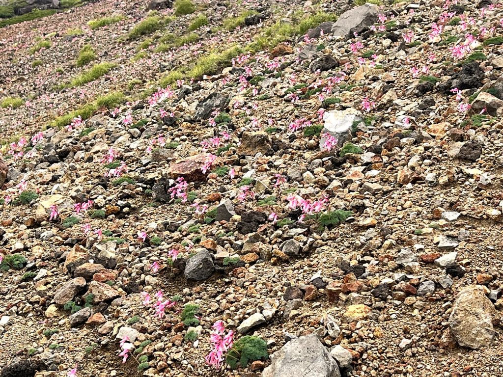 2~3分登山道を下った斜面には、コマクサの群生地。