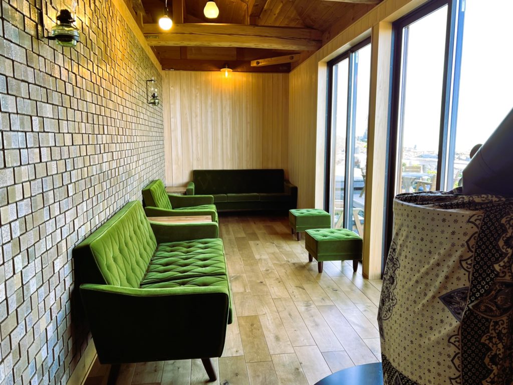 また、建物内には、大きなガラス窓にゆったりソファーのラウンジがあり、疲れた心と体を癒す空間となっています。