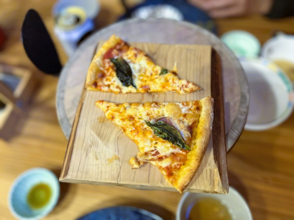 夕食後には、薪ストーブのオーブンで焼いたピザのサービスがありました。