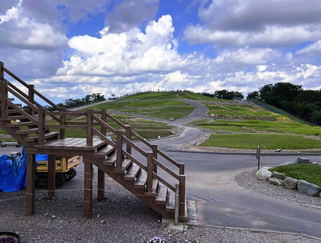 木漏れ日が降り注ぐ木のアーチを通り抜けた先に、展望台が見えてきましたよ。