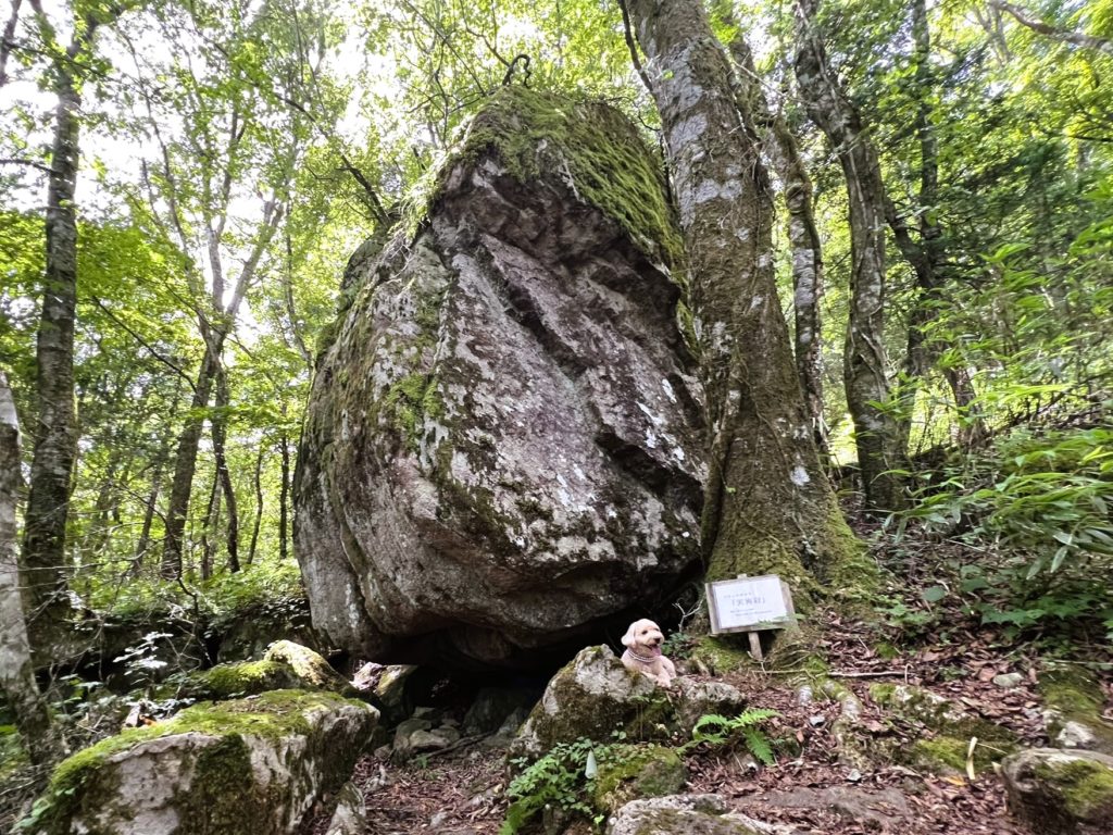 こちら、天狗が舞い降りる岩でしたが、落雷により亀裂が入り、それに驚いた天狗はその後悪さをしなくなったとの言い伝えがあります。