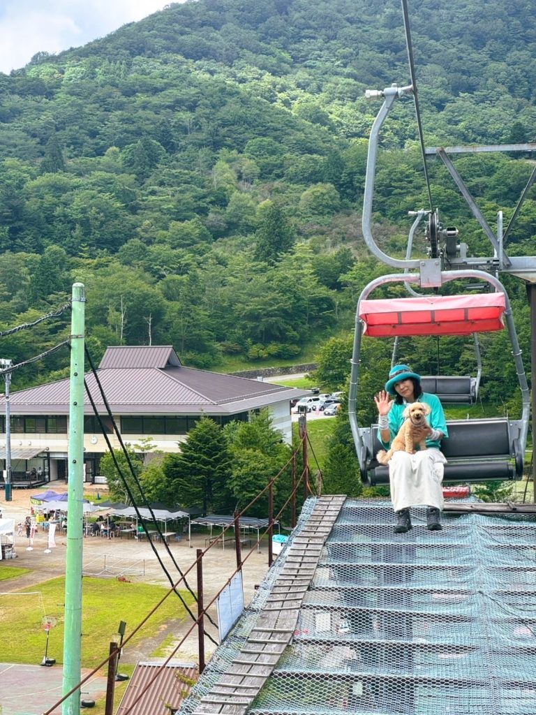 山頂まではリフトに乗って約13分。抱っこできれば、ワンコOKです。