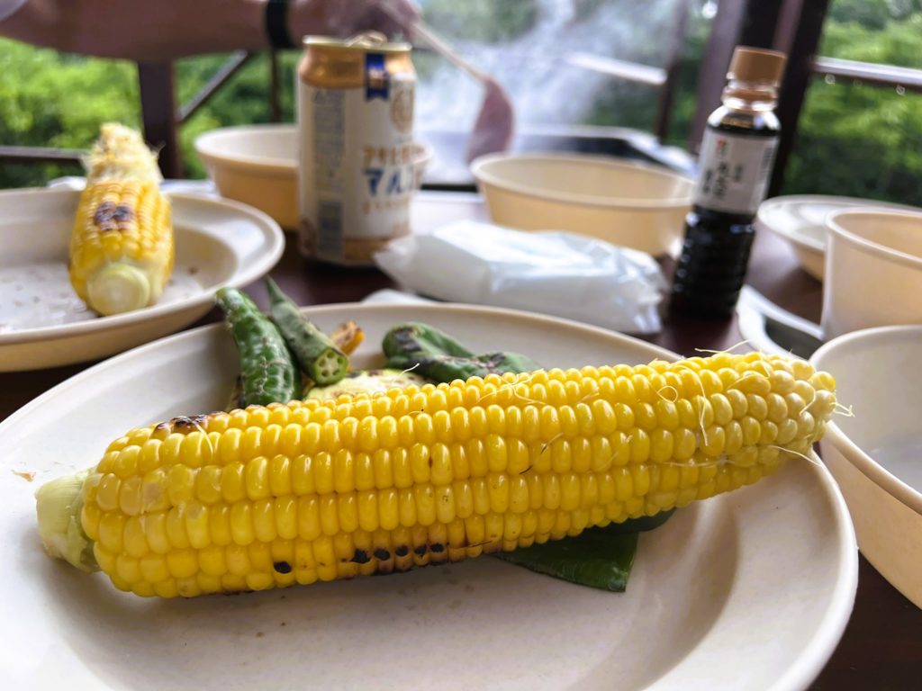 ホイルに包みじっくり焼いたトウモロコシが、甘くて美味しい!
