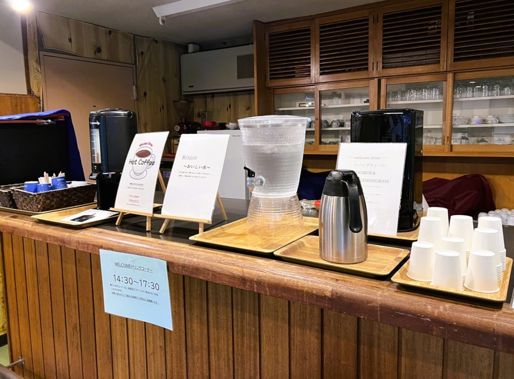 少し奥まったところに『ウエルカムドリンク』が用意されていました。