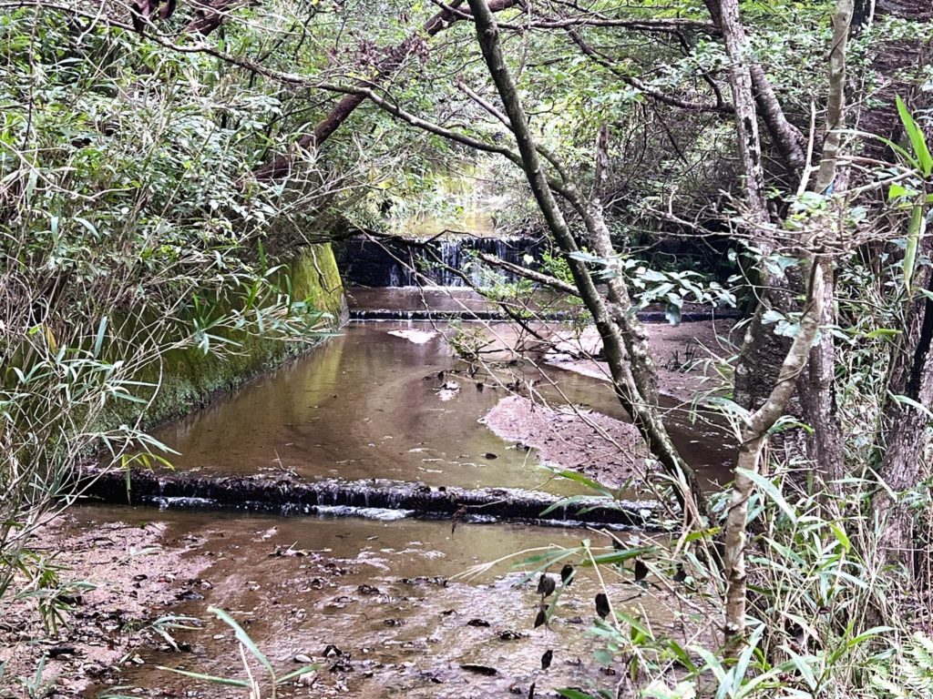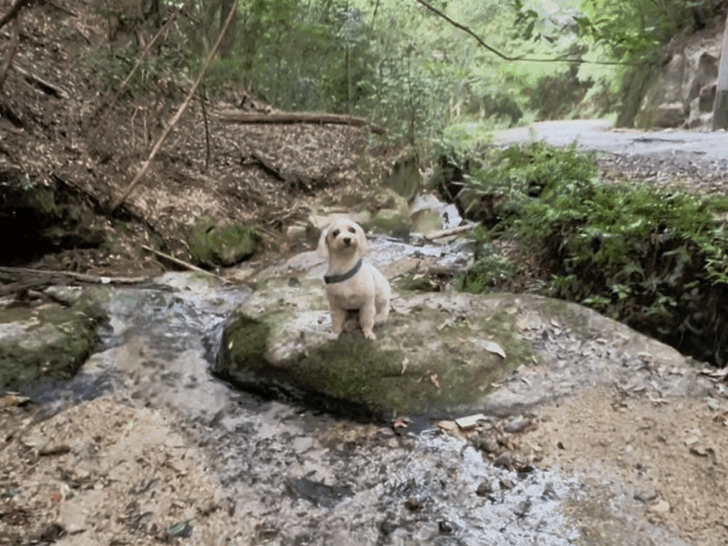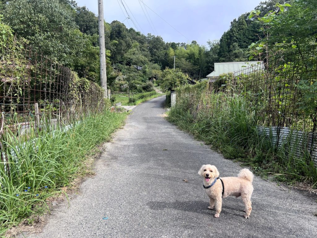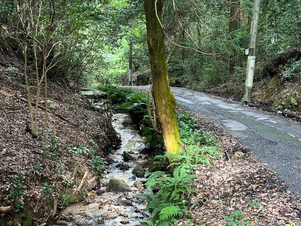 道の傍らには小川が流れており、空気がひんやりとして気持ちがいいです。