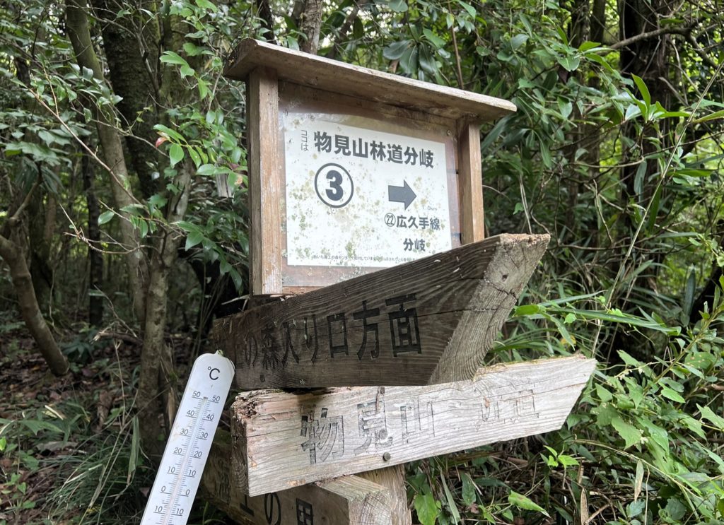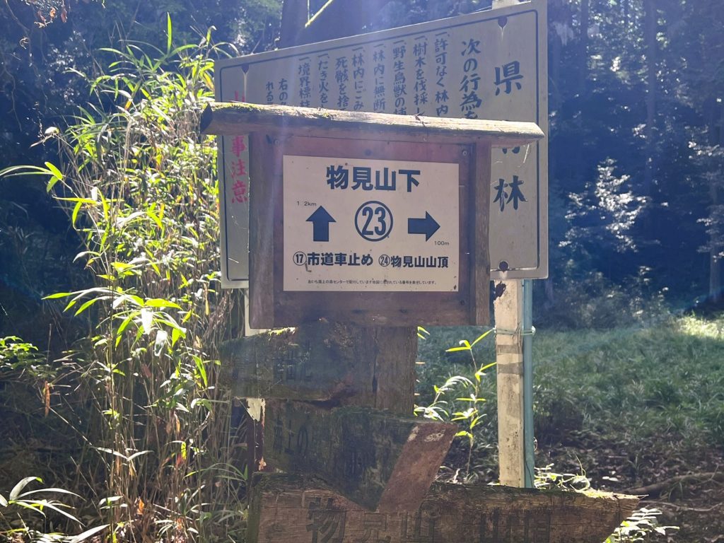 平和な山の中を歩いて行くと、「物見山下」に到着しました。