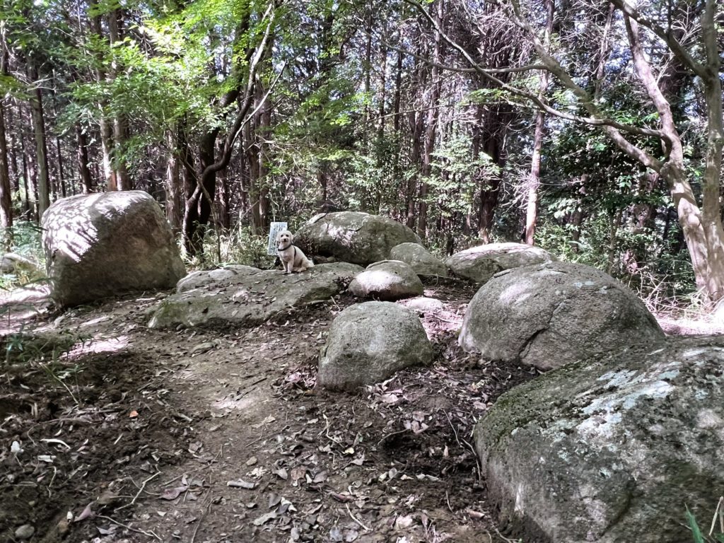 ゆるやかに山道を下って行くこと2~3分、大きな岩がゴロゴロしている場所がありました。