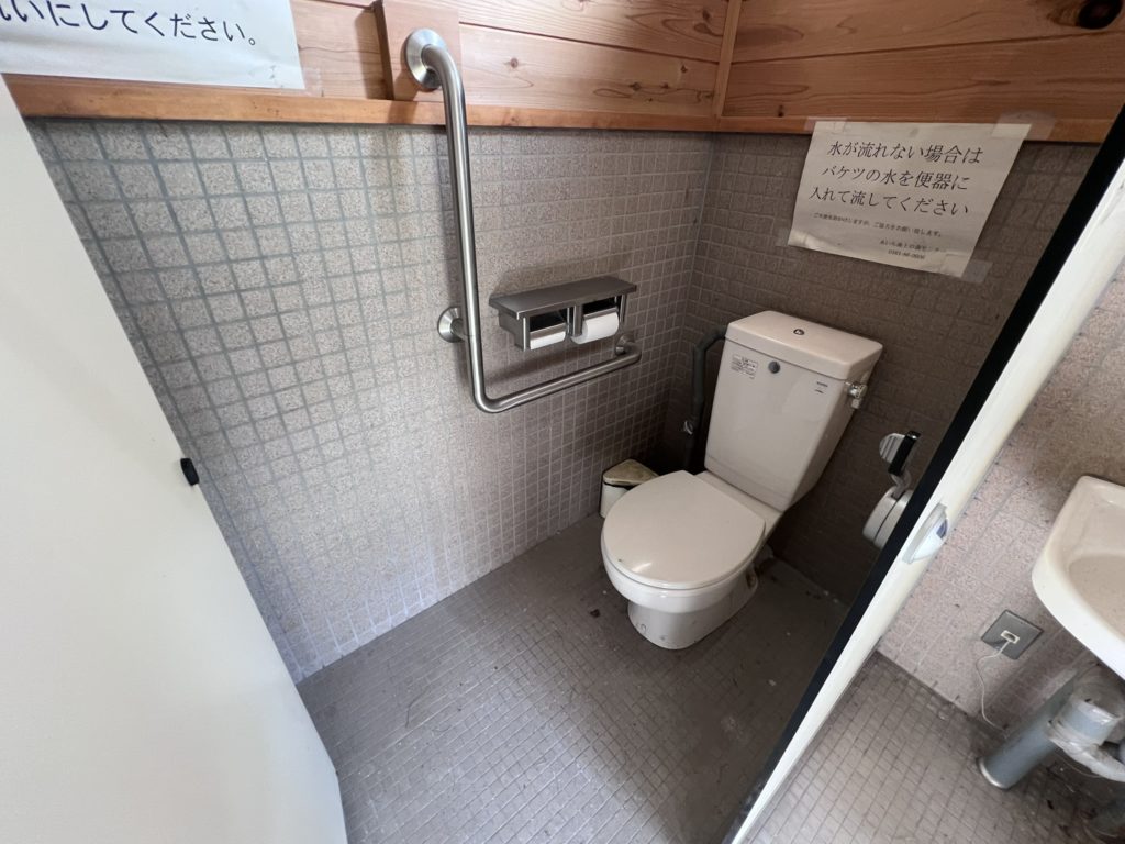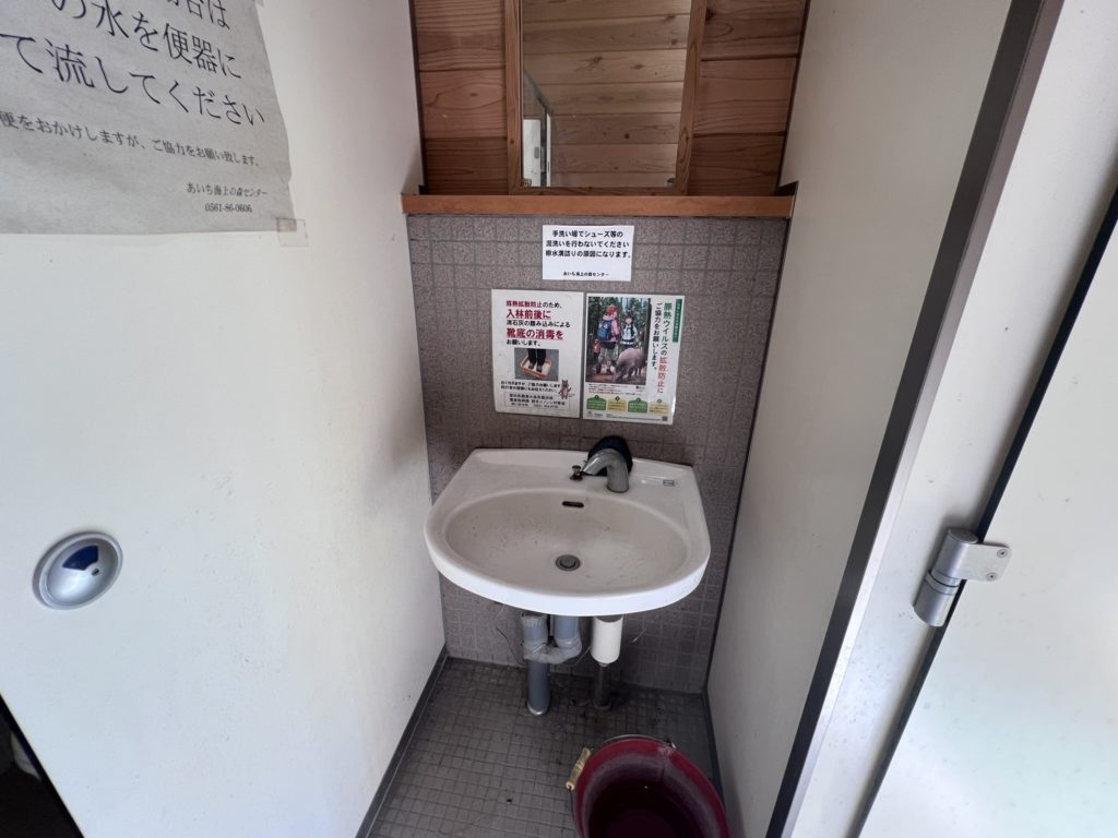 平成16年に完成した循環式トイレで、手洗い水には雨水を利用しているそうです。