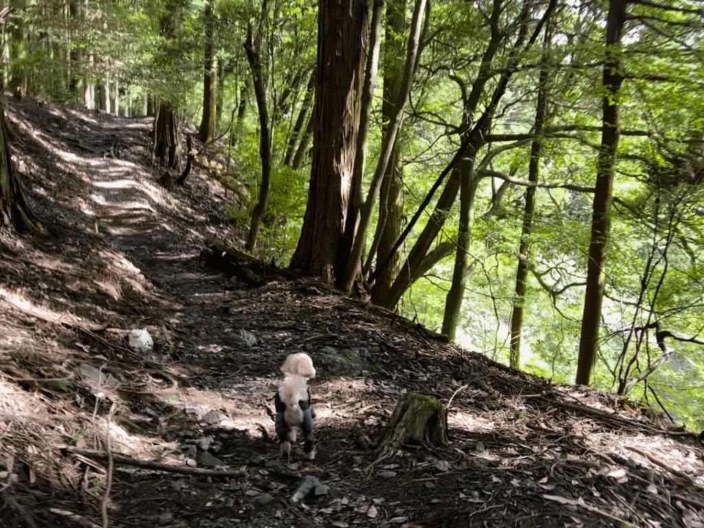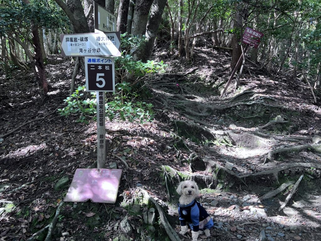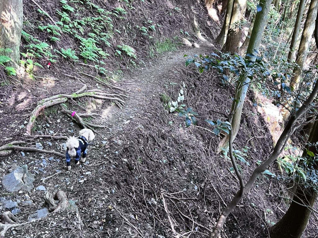 帰りは、白い鳥居をくぐった先に入口がある『二本松尾根コース』から下山します。