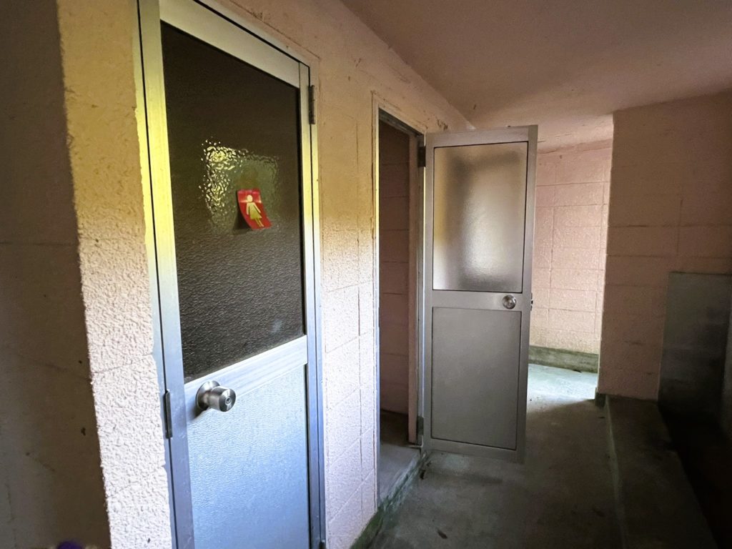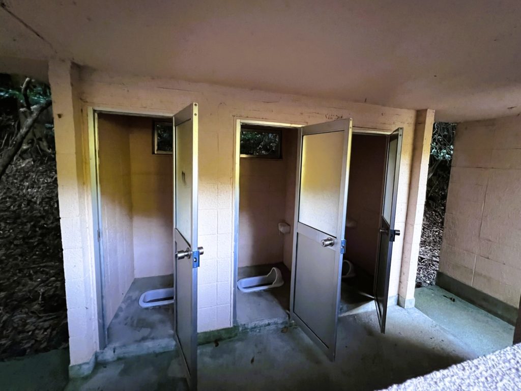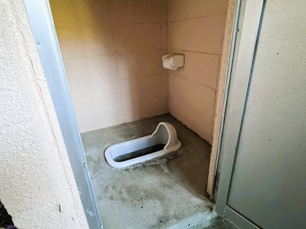 トイレは、車道の反対側にあります。