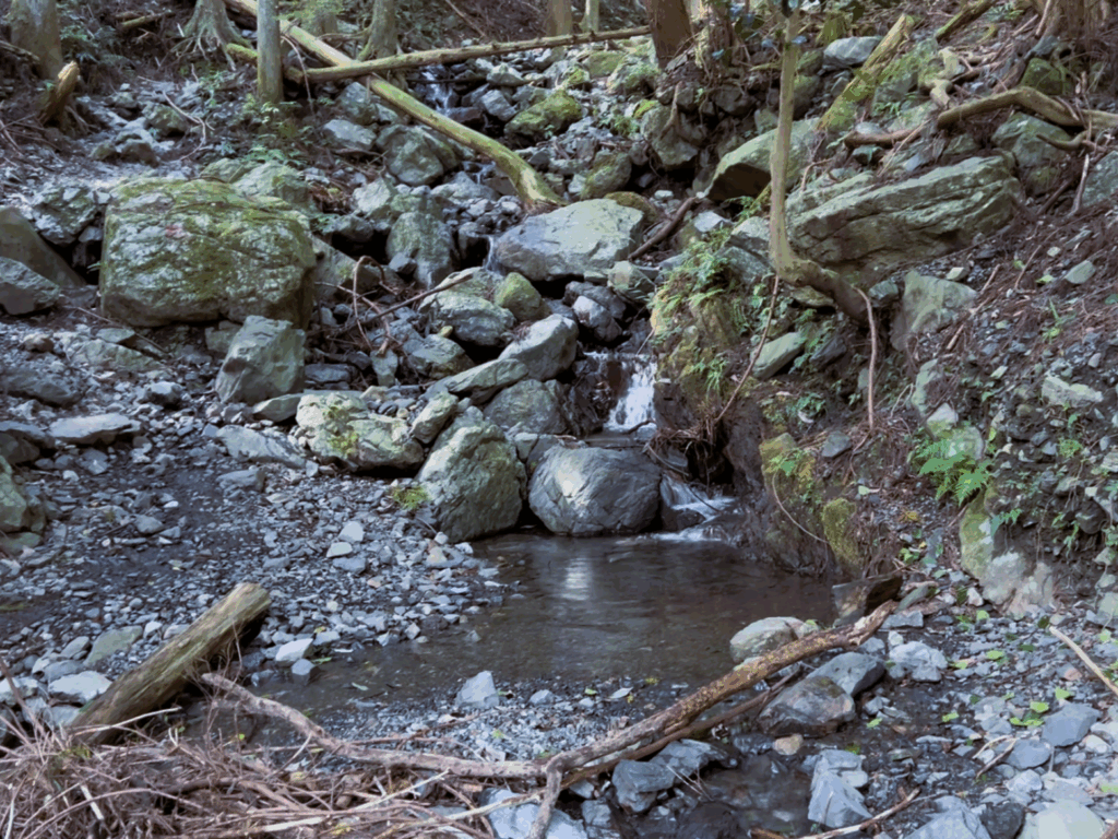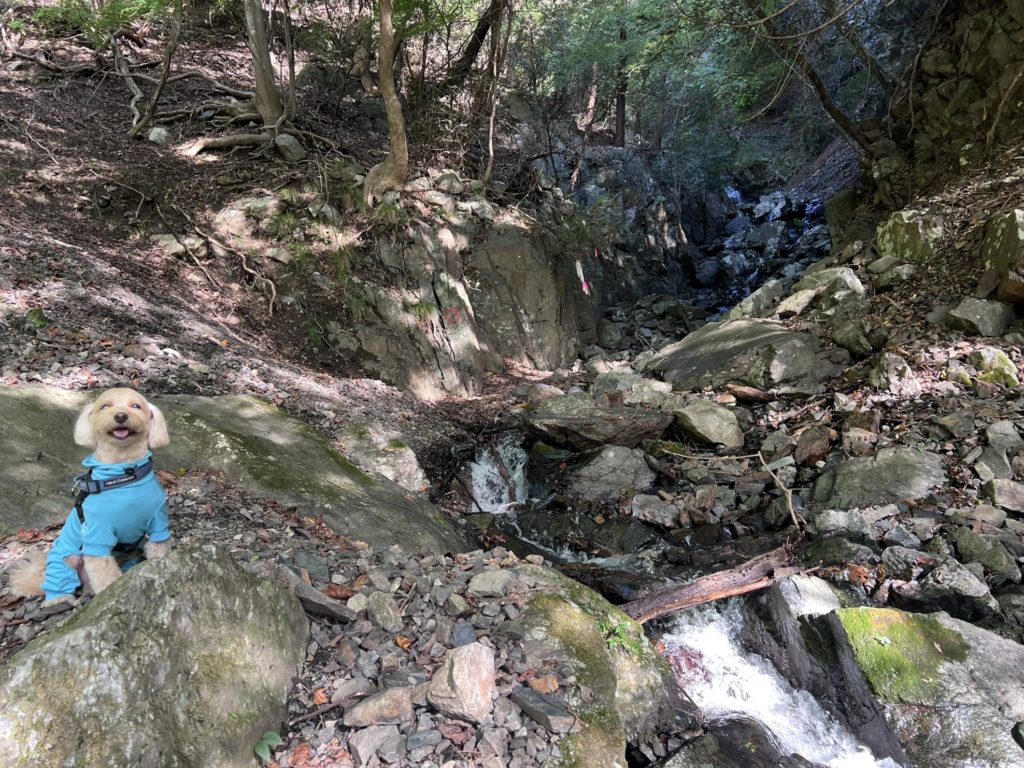 最後に登り切ったところで、細くなった沢を反対側へ渡り、クリアです。