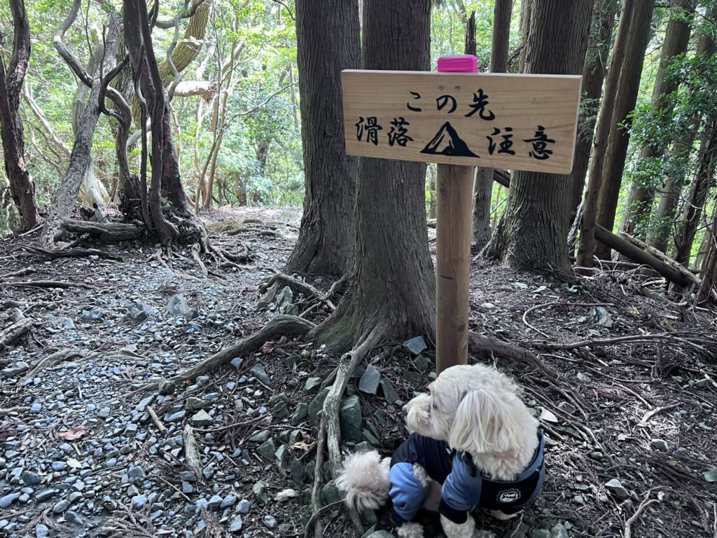 『この先滑落注意』の看板。