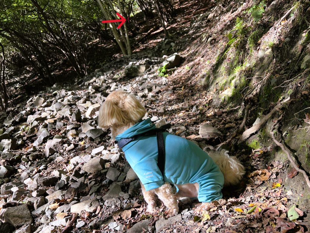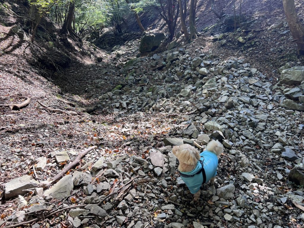 川沿いに進んで行くと、急なザレ場があります。