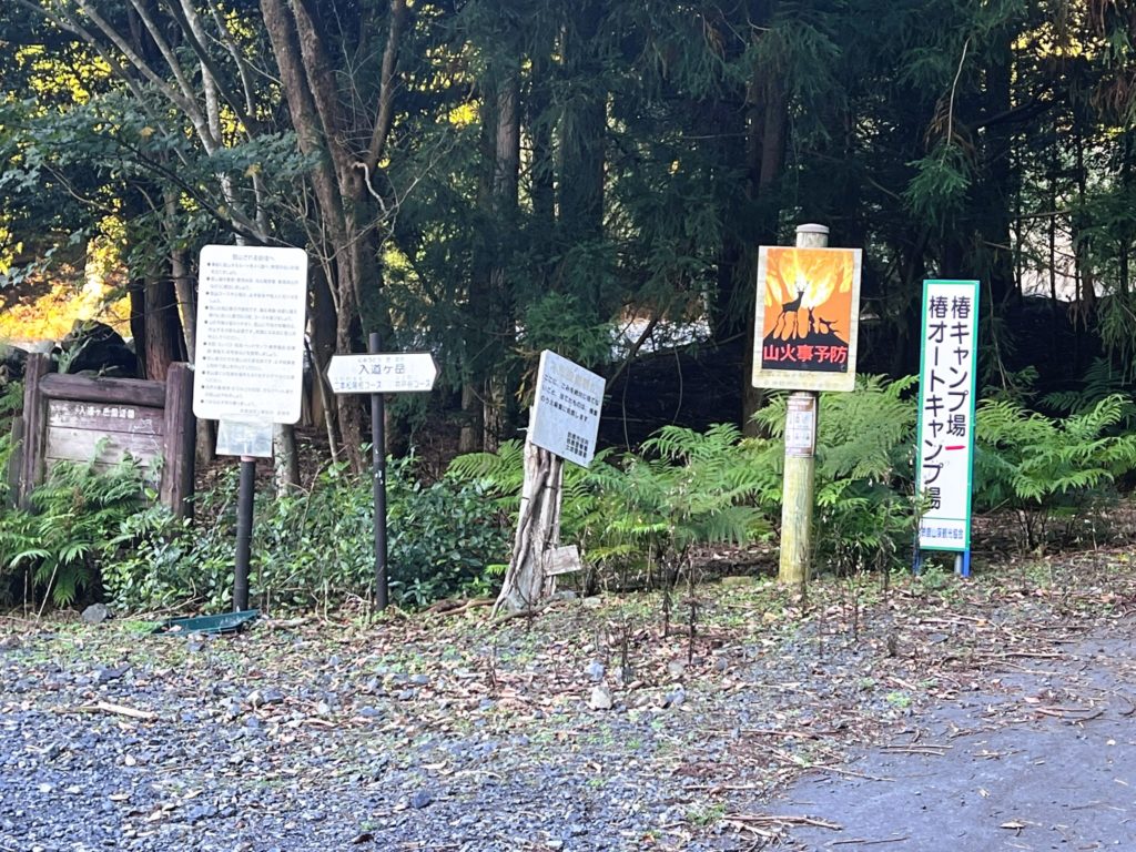 そちらへは行かず、登ってきた車道から『椿キャンプ場』の方へ向かいます。