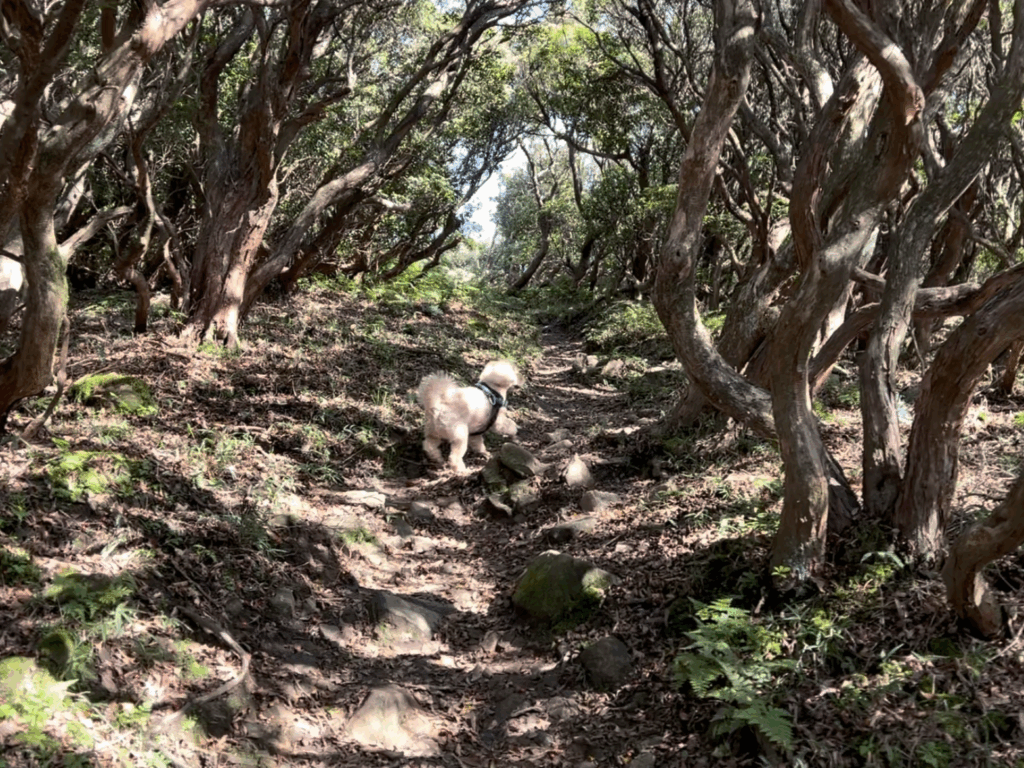 避難小屋から15分ほどで、植林の森となりました。
