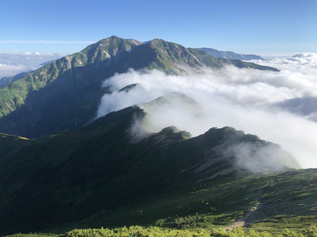 「唐松岳」もハッキリ見え、ご来光・夕陽とどちらもバッチリなのでぜひ登ってみてください。