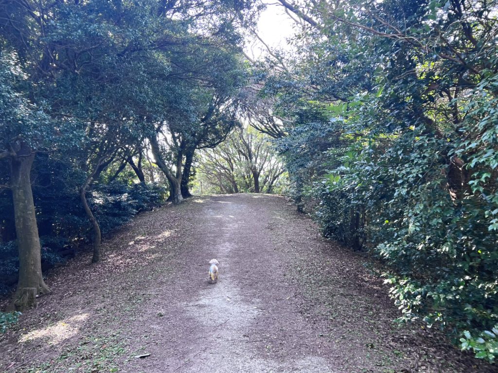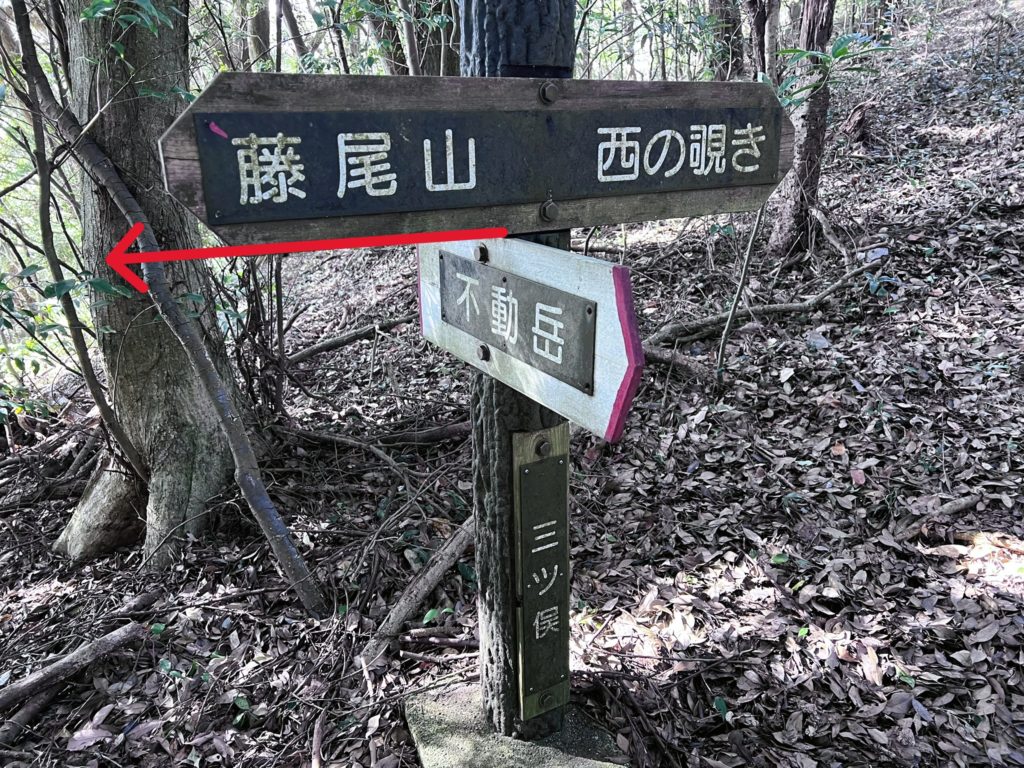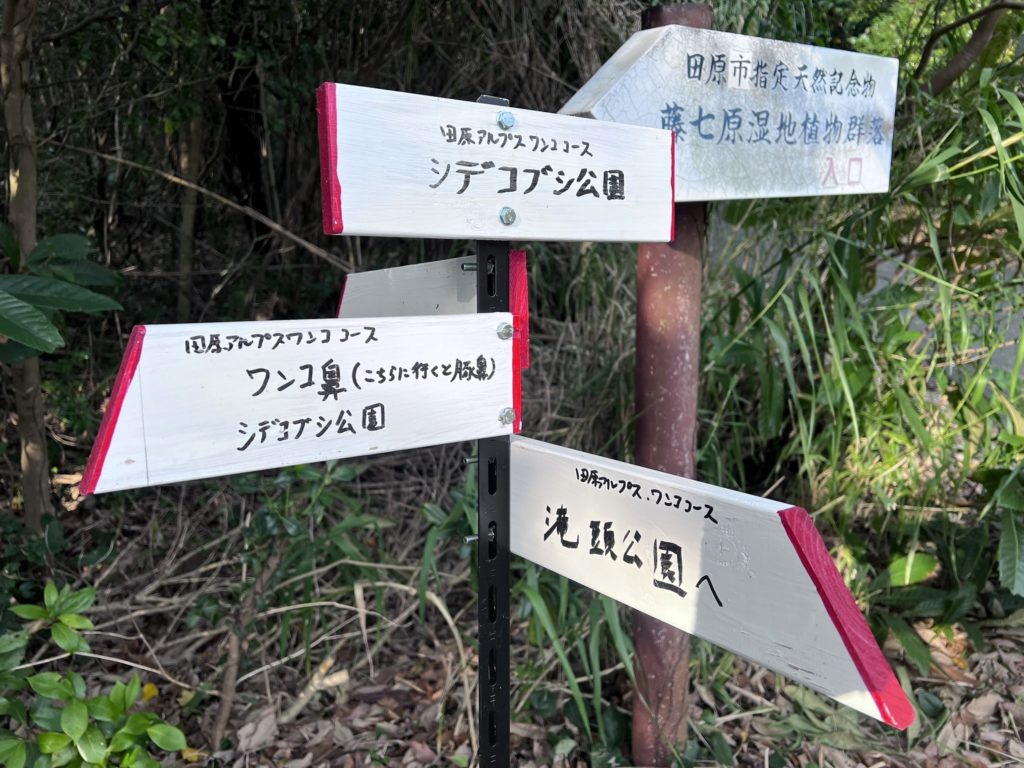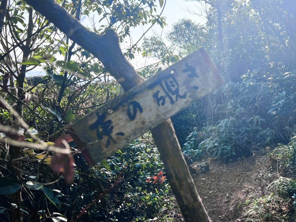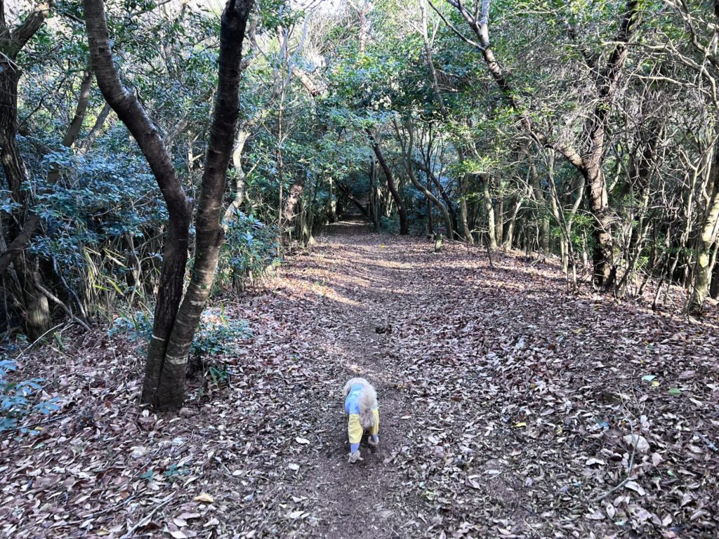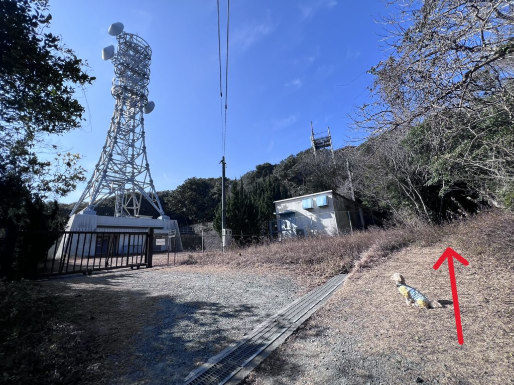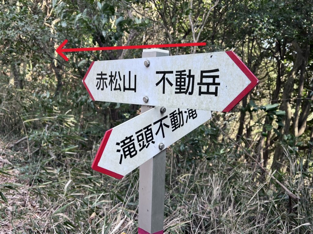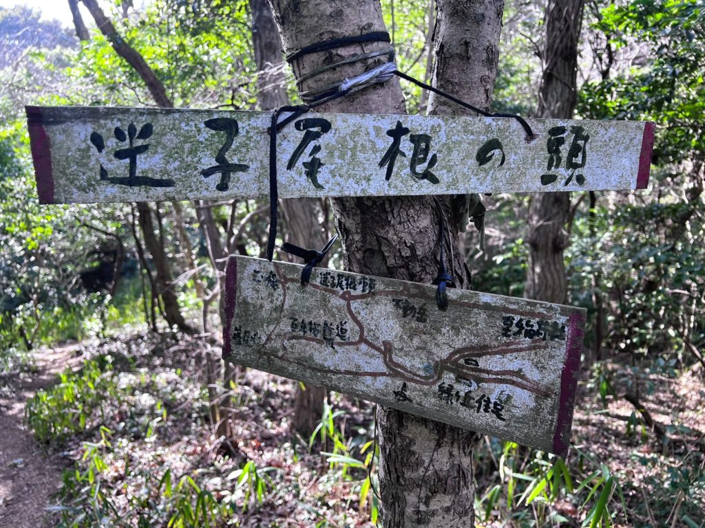 『目』の線を作り終わったら、車道まで戻らず案内板を左折し、山道へ入って行きます。