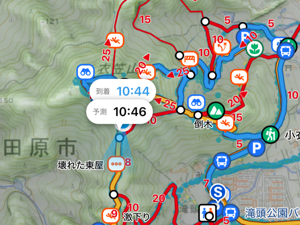 YAMAPでコピーした奇跡をたどればいいだけの話なのですが、多数ルートが交錯していて、一筋縄ではいかないところ(;^ω^)