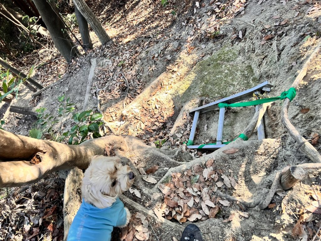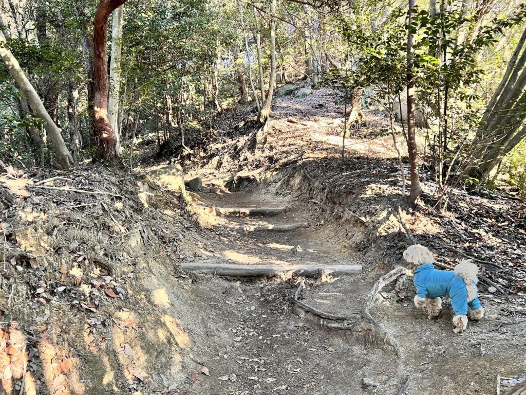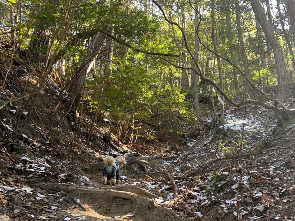 駐車場へ戻る道は、まあまあ荒れた登山道。