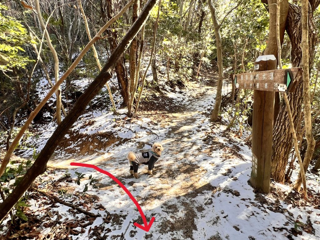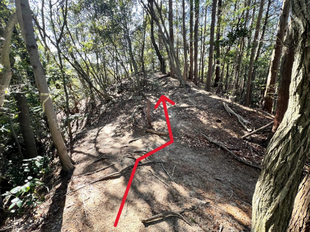 この分岐は右へ登ると小高い丘に着きますが、眺望もなくあまり意味がありません。