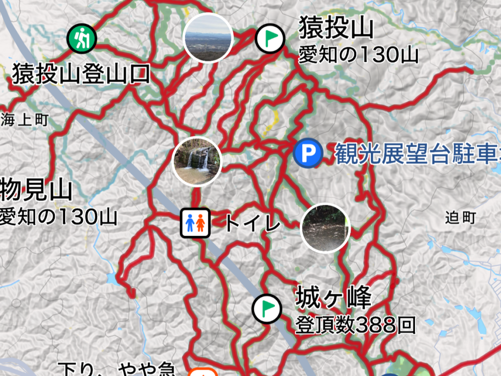 見どころ満載の「猿投山」には、クモの巣状に張り巡らされた無数のルートがあります。