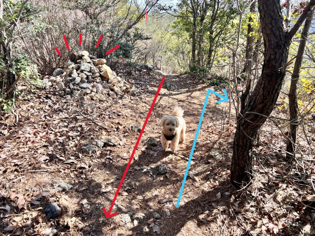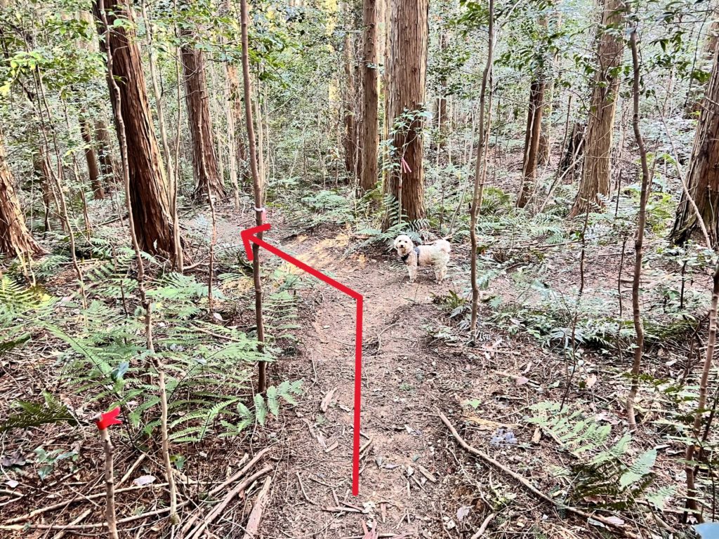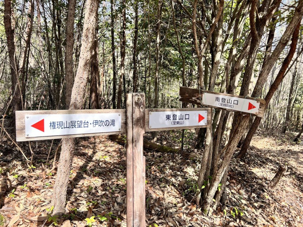 右方面に「芥見権現山」の案内板がありますが、そちらに行くと「どんぐり山」へは行けないので注意しましょう。