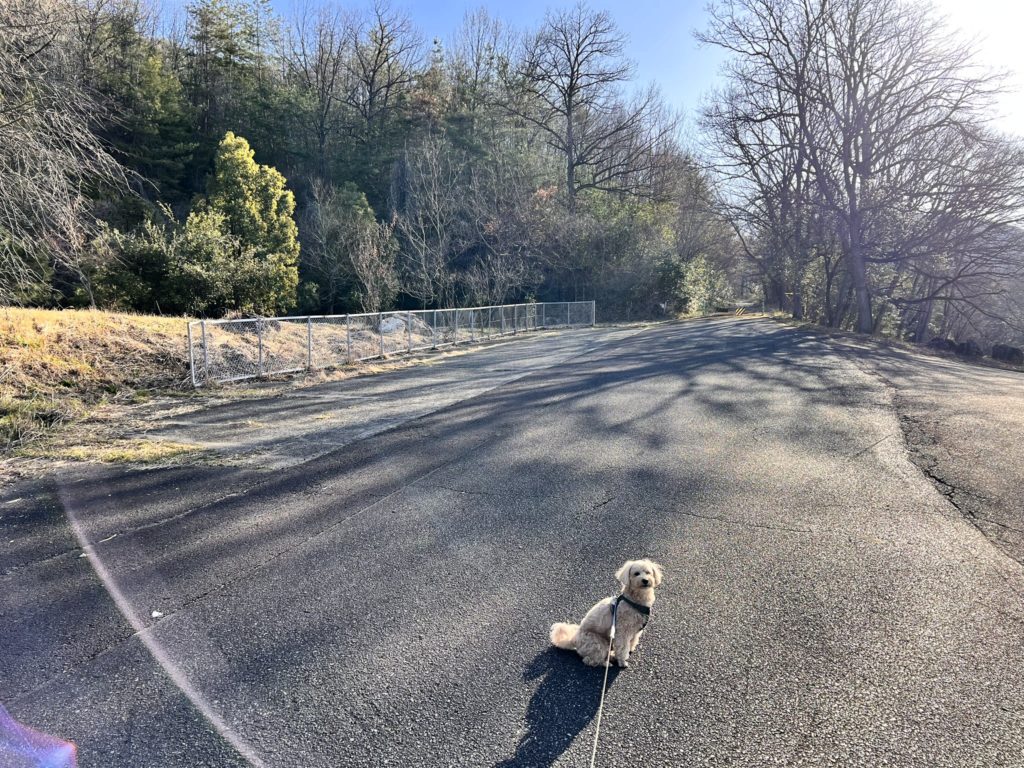 スタートから車道を歩くこと1km 約20分『駐車スペース』に到着しました。