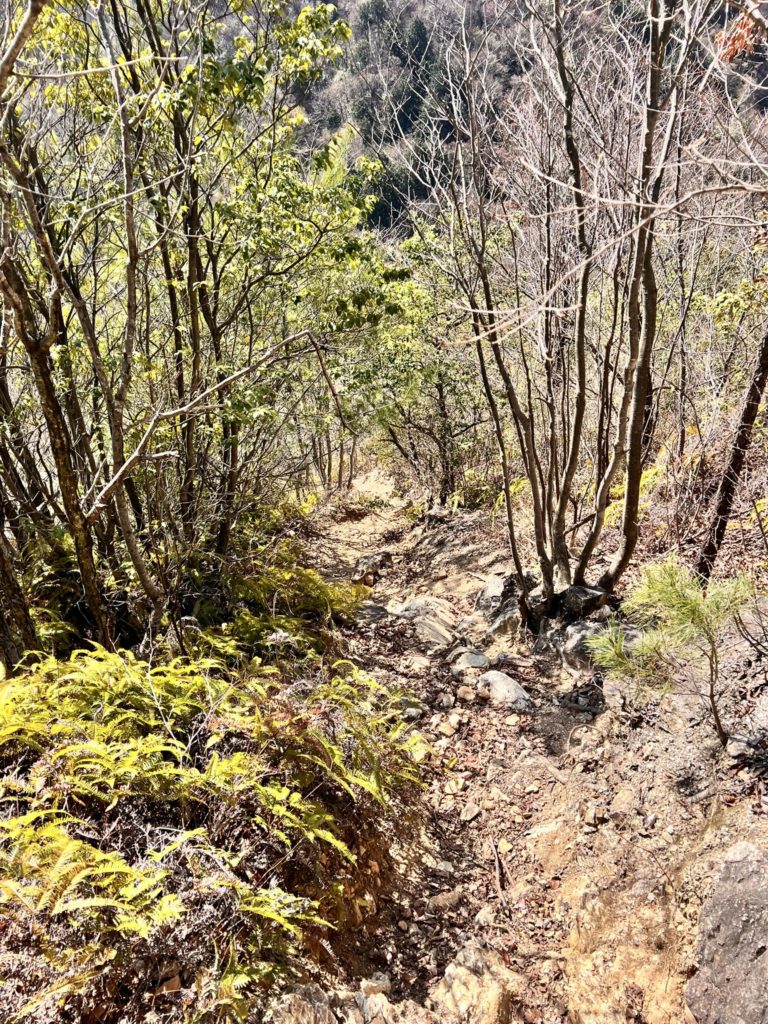 ロープが終わってからもしばらくザレザレ急坂が続きます。