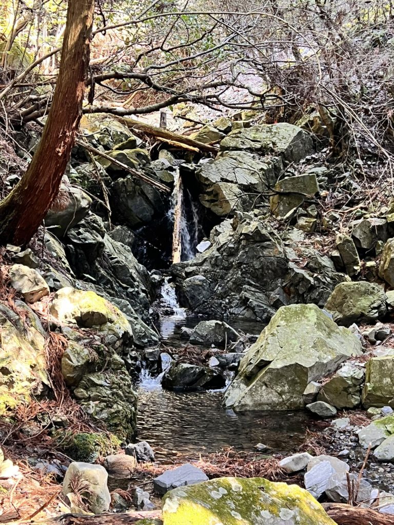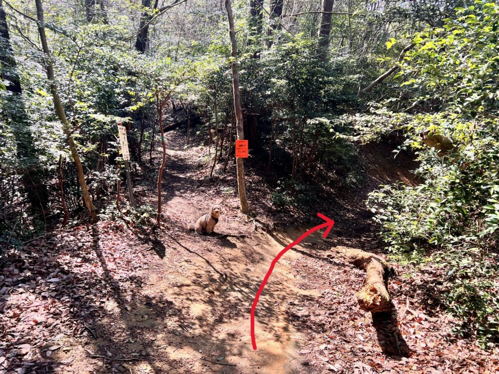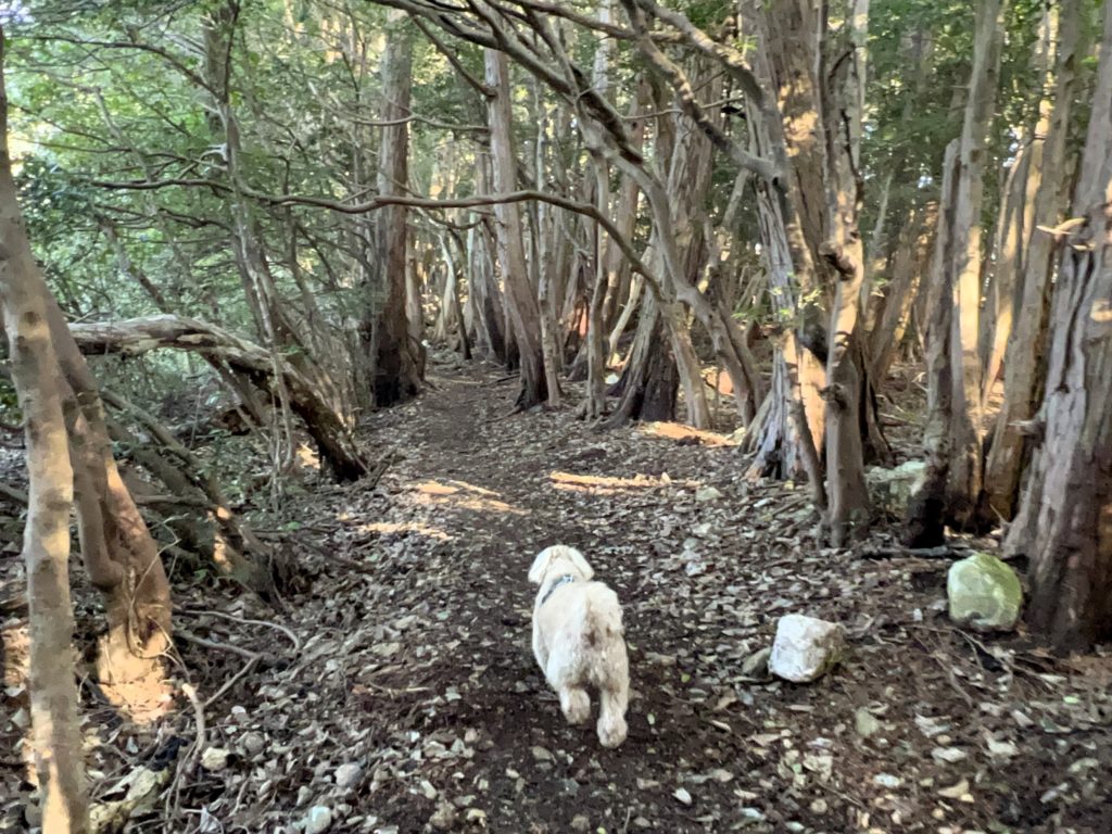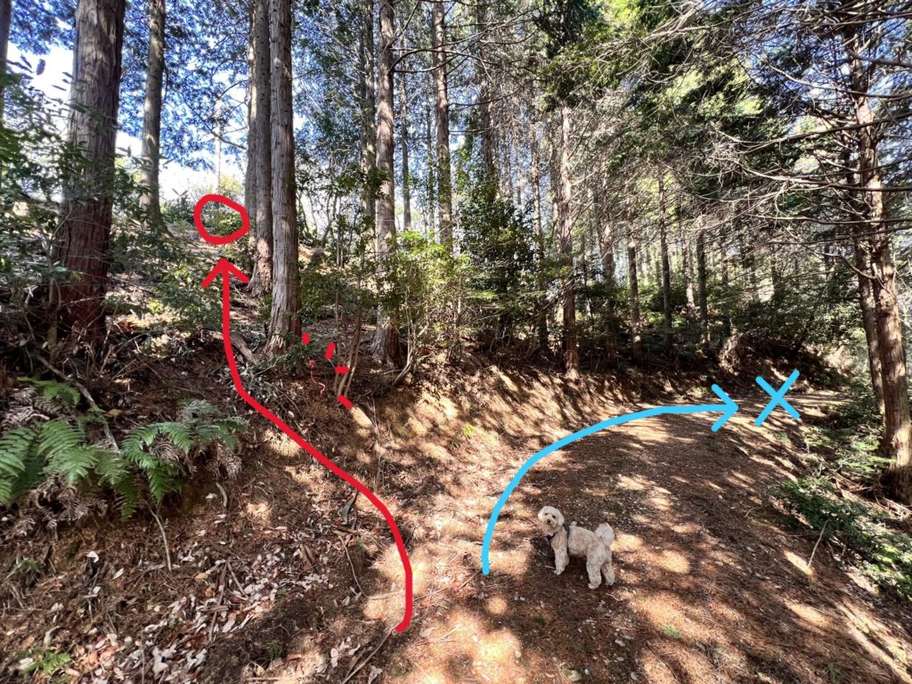 このまま直進していると「石津御嶽」へ行ってしまうことに気付き、ルート修正。