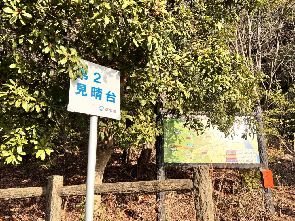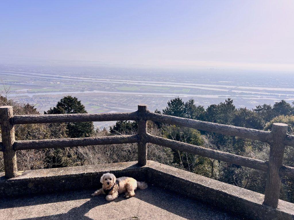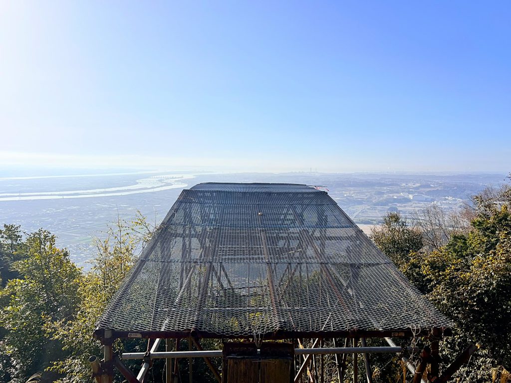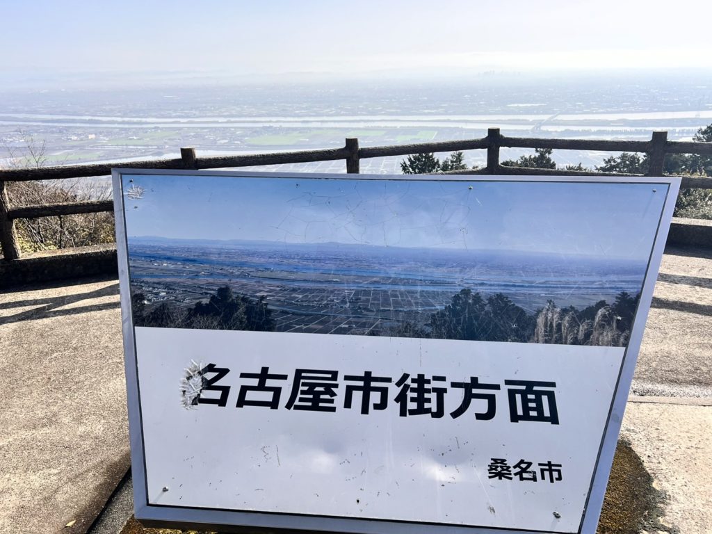 山頂には、展望台を兼ねた広いスペースの休憩所があり、木曽三川(きそさんせん)の雄大な景色が望めます。
