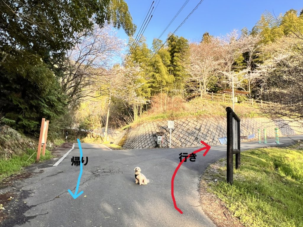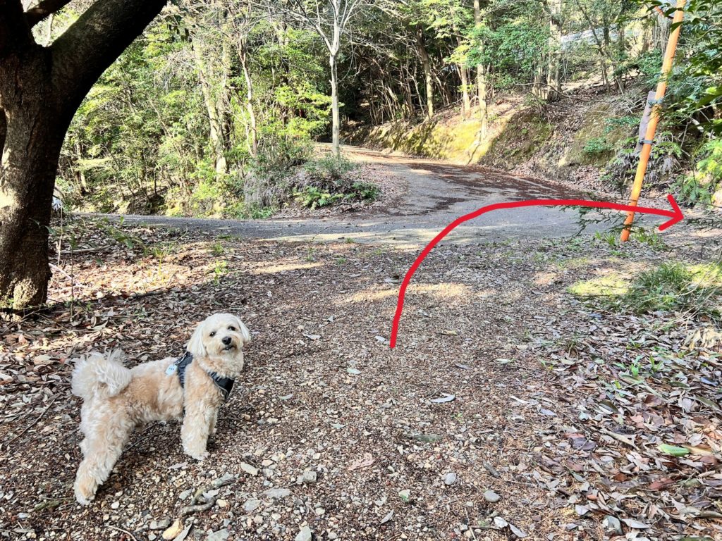 『アスファルト道路を進むか、山道へ入るか』の選択ポイントに到着です。