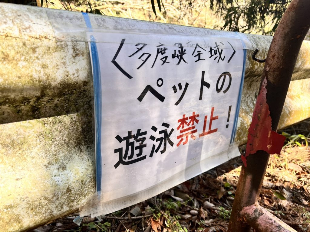 少し進んだ先に『ペットの遊泳禁止!』の貼り紙がありました。