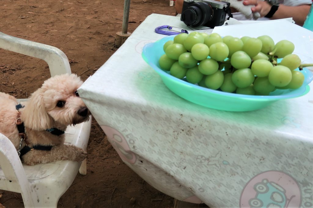 (飼い主が)至福のひと時♪旬のぶどうが食べ放題!