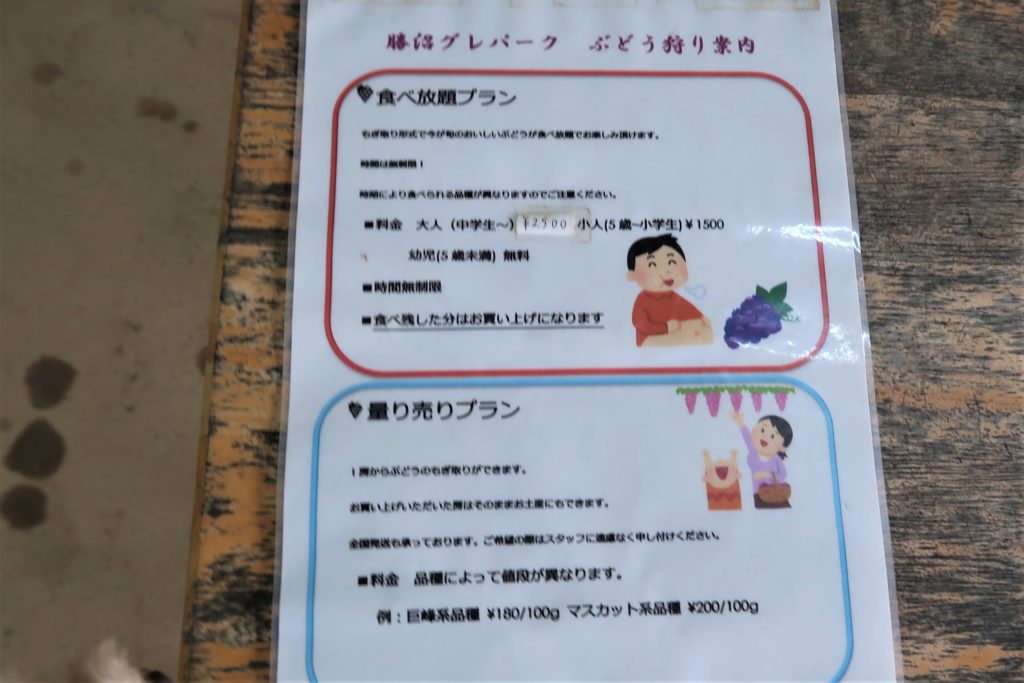 受付で「食べ放題」か「ぶどう狩り」かを選択します。(もちろん両方でもOK)