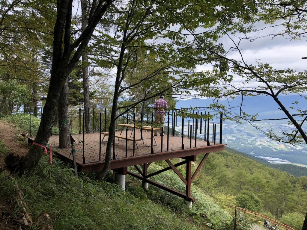 ビューポイントのデッキが見えてきました。斜面からせり出すように造られた展望台です。