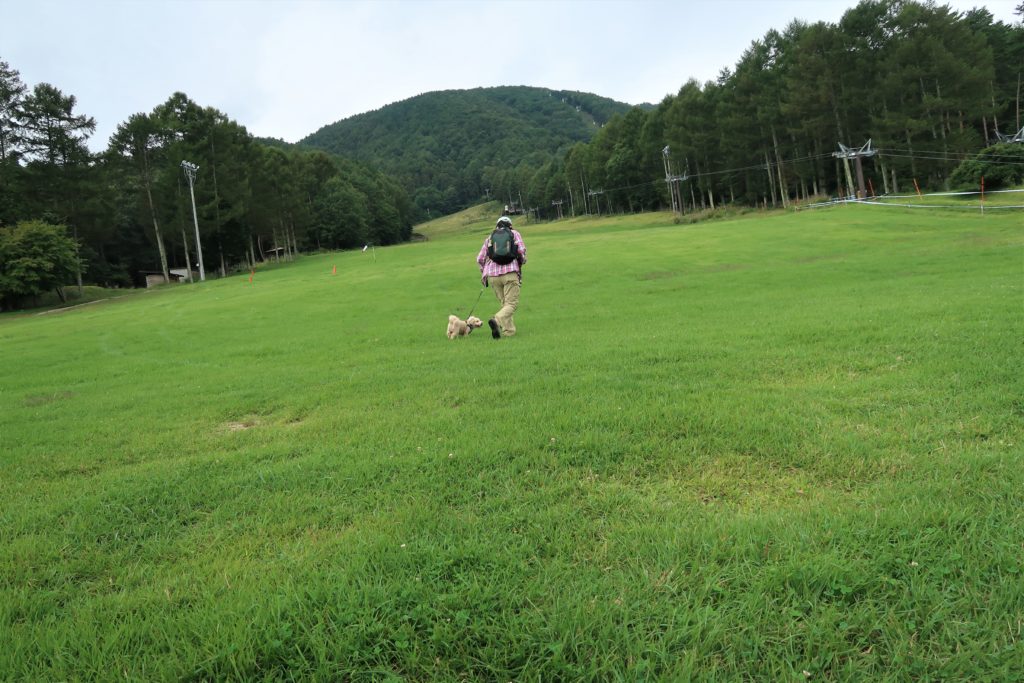 夏のスキーゲレンデは、緑が鮮やかな気持ちのいい芝生が広がります。