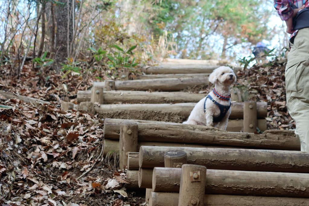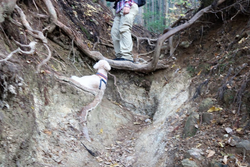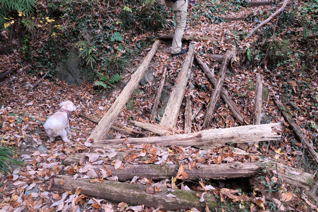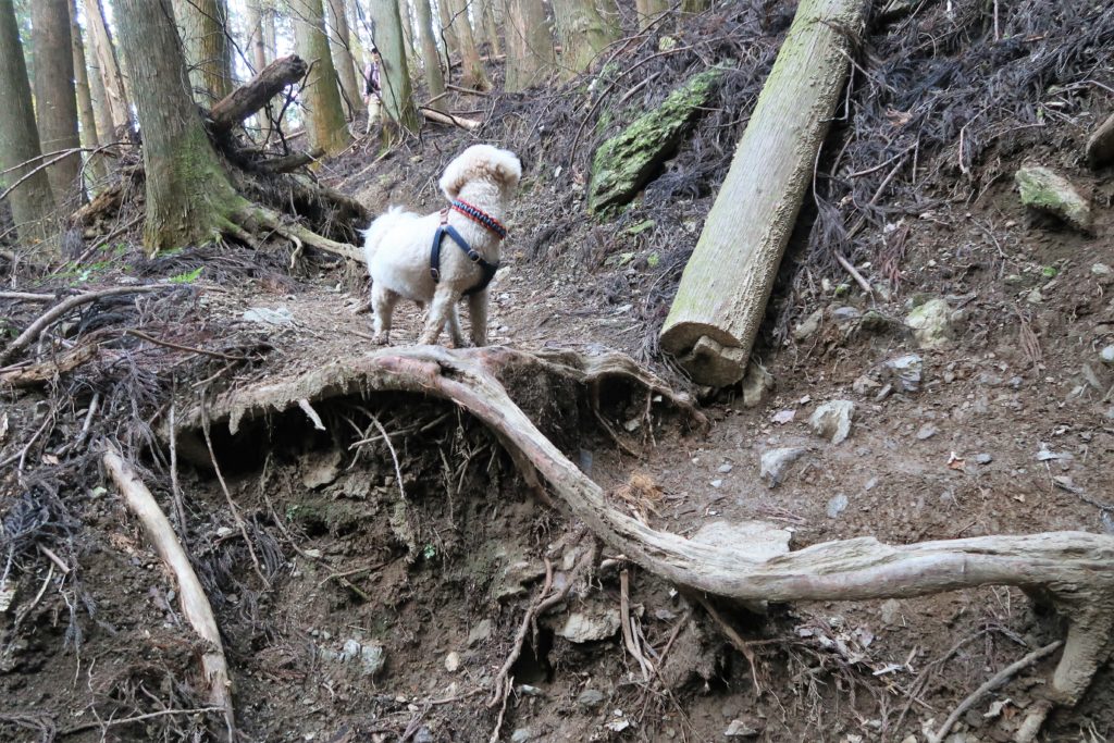 きちんと整備された登山道なので迷う心配はあまりありませんが、たまに段差の大きな個所や障害物があったりするので、エルモも抱っこが必要な個所がいくつかありました。