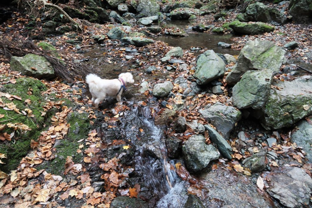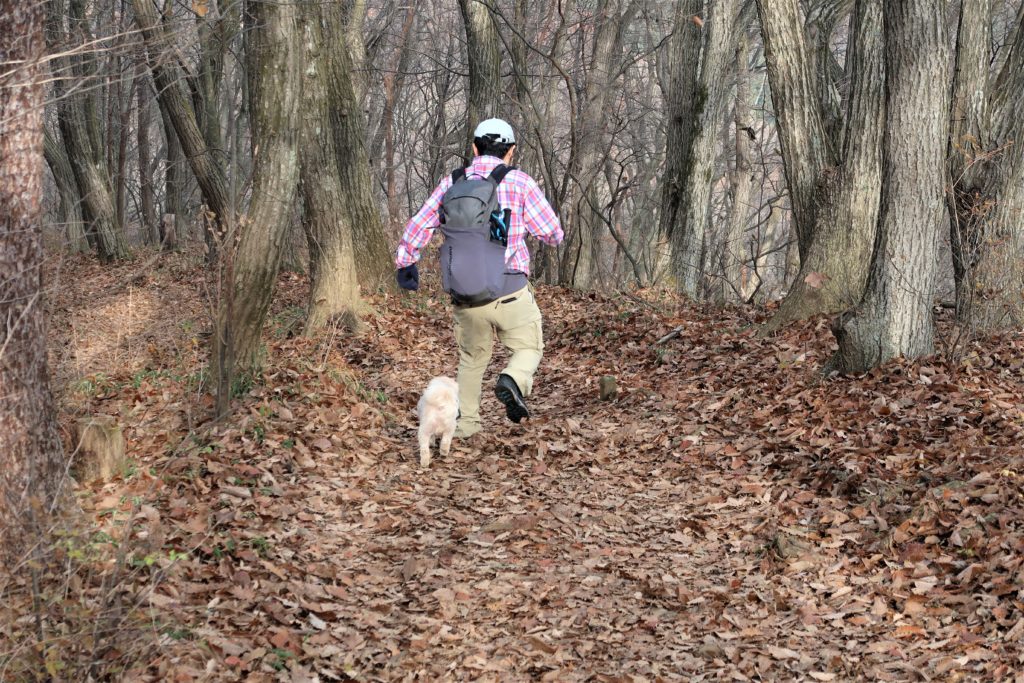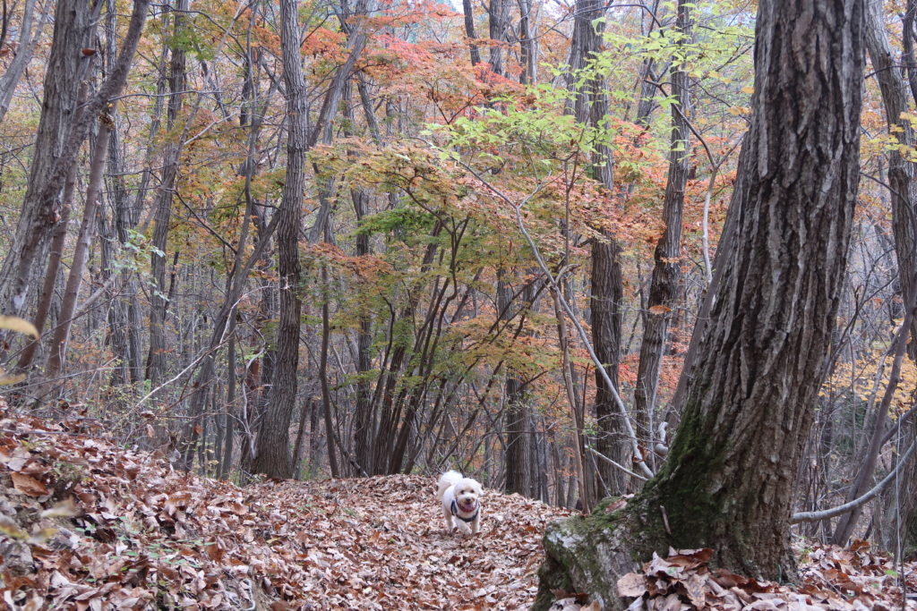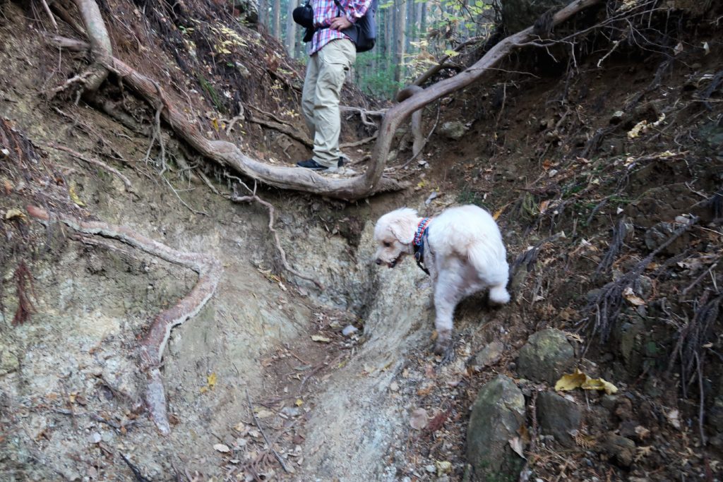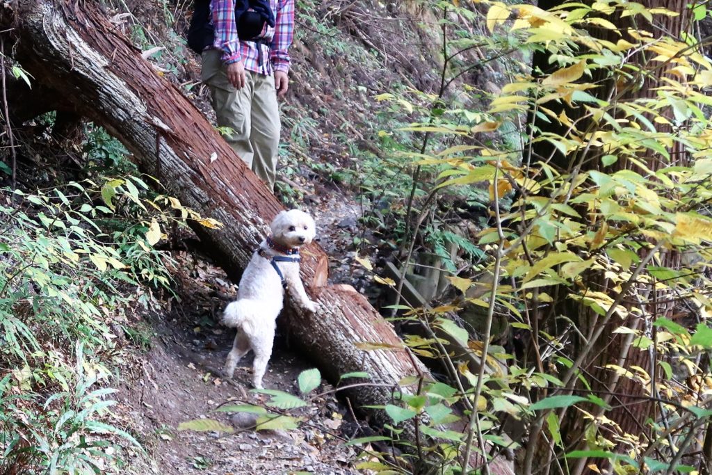 きちんと整備された登山道なので迷う心配はあまりありませんが、たまに段差の大きな個所や障害物があったりするので、エルモも抱っこが必要な個所がいくつかありました。