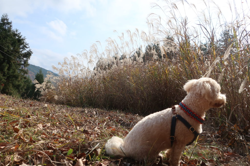 日向山を越えて、エルモにもちょっと疲れが見えてきたようですが、100mのすべり台が待っている「農村公園」へ向かいましょう。ここから20分くらいです。