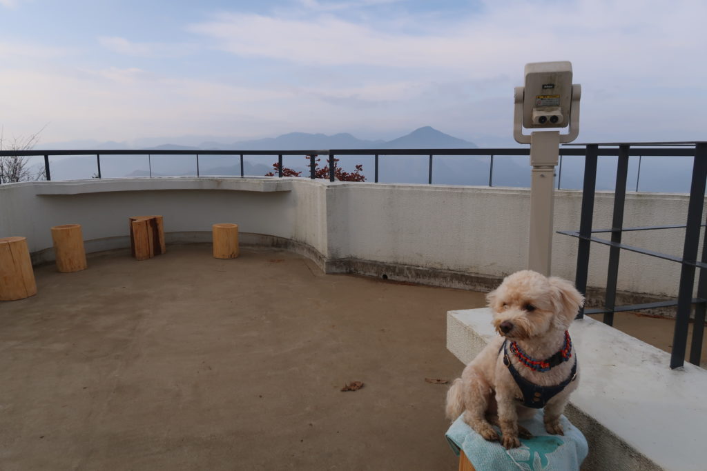 登ってみると、広いスペースがありベンチや望遠鏡も完備されています。360度のパノラマが広がり、武甲山の眺めも素晴らしいポイントです。
