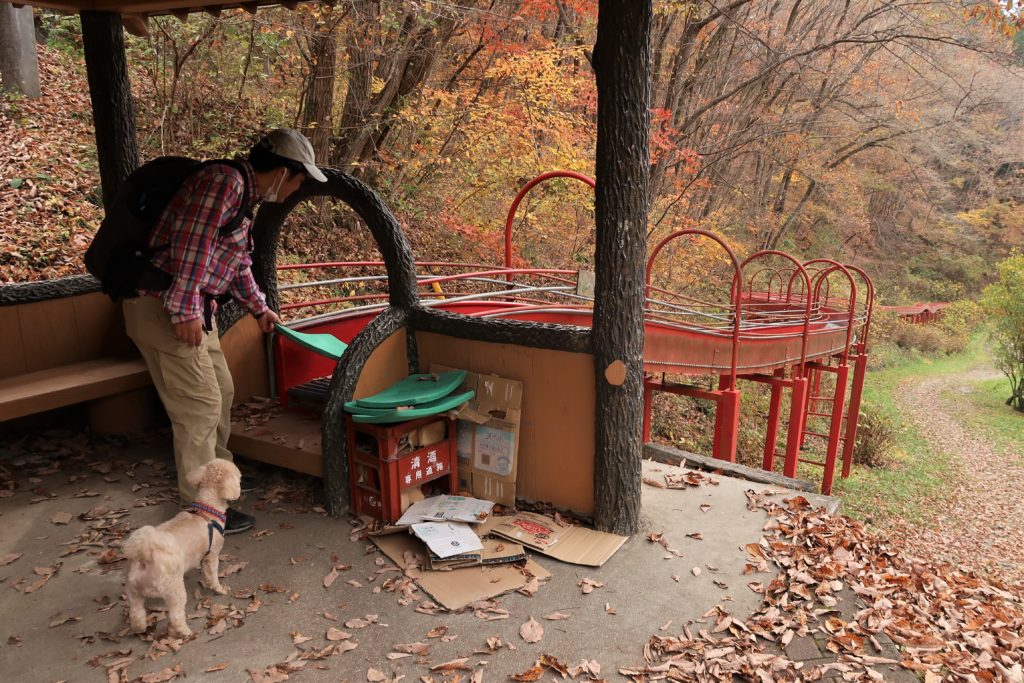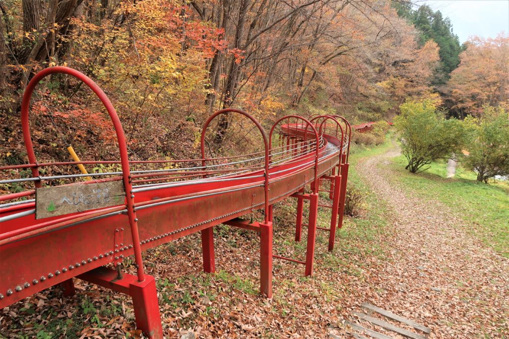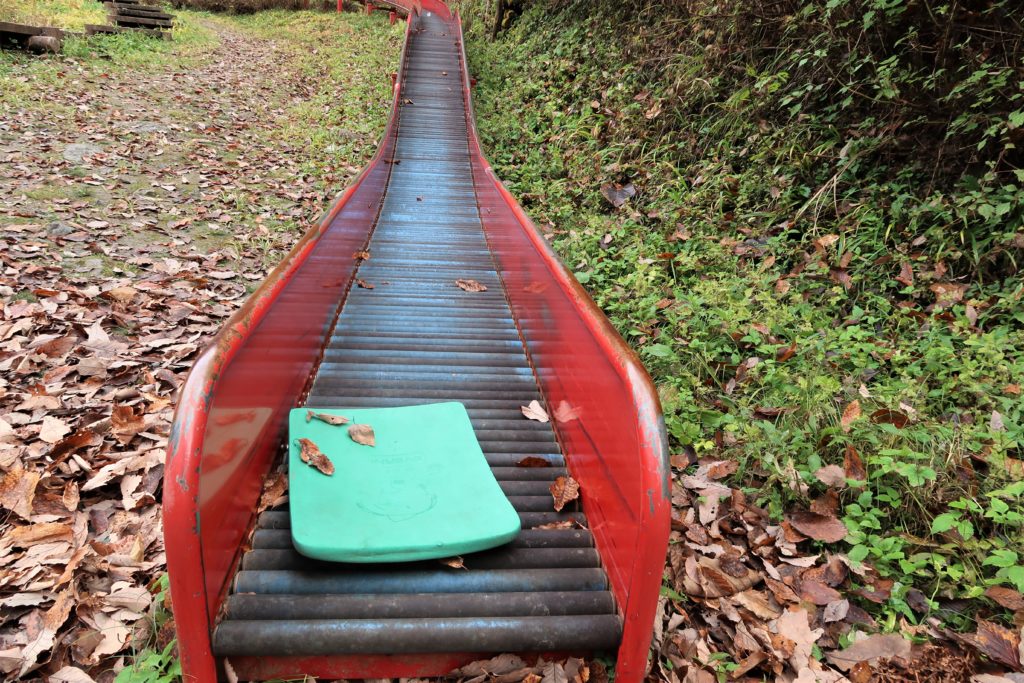 途中、「あしがくぼ果樹公園村」内の「農村公園」には、子ども達が大喜びしそうな100mのすべり台「ローラーコースター」があり、滑走用のマットも用意されています。他にもターザンロープや池があり、自然いっぱいの公園となっています。