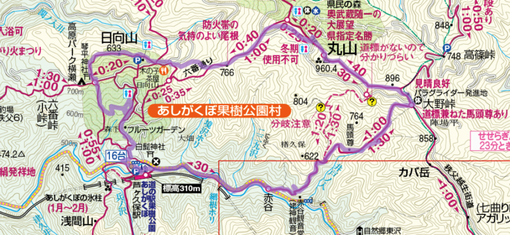 この辺りは12軒のフルーツ農家で構成されている「あしがくぼ果樹公園村」となっており、季節によってイチゴ狩りやブドウ狩り、シイタケ狩りなども楽しめるようです。
