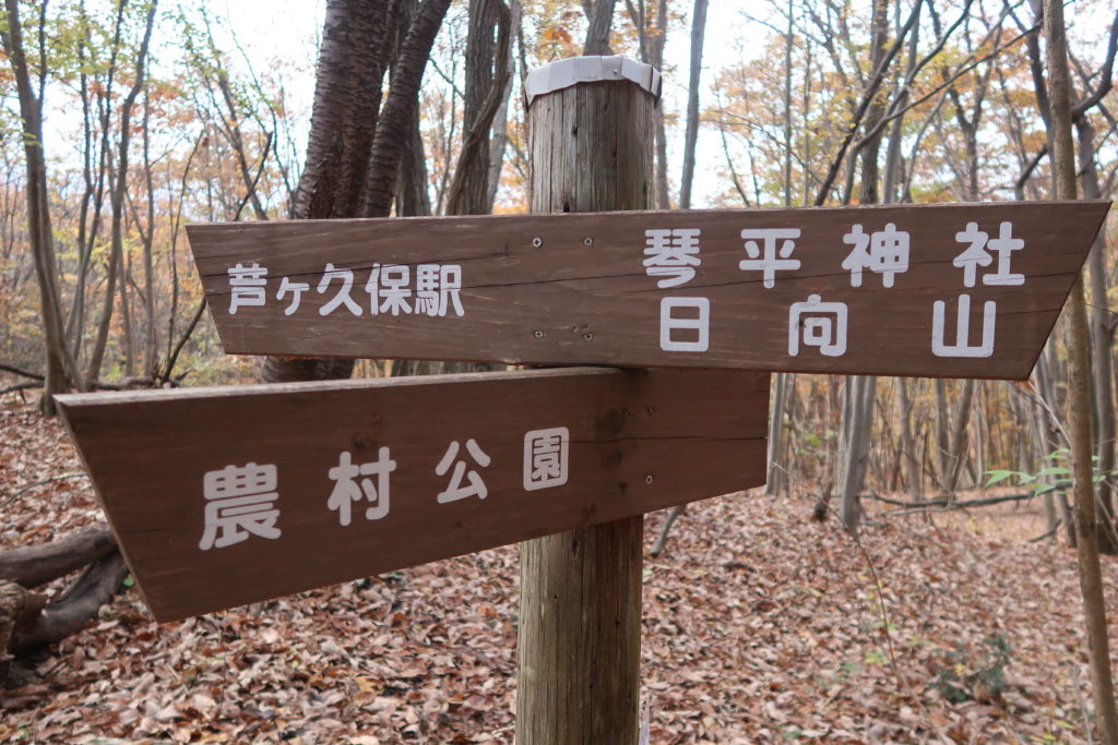 秋らしい景色の続く道を下っていくと、「琴平神社」に到着です。