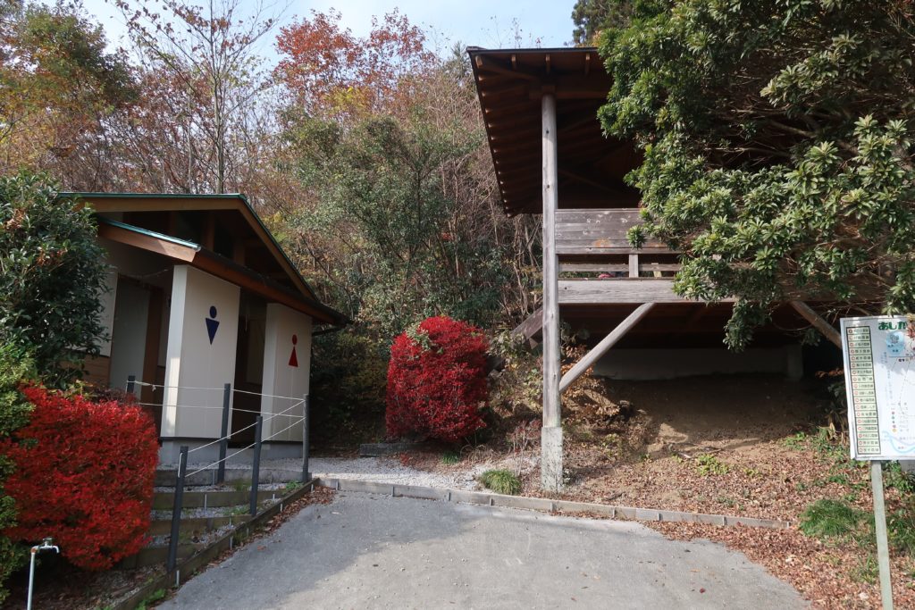 「奥の院」の階段下にトイレがあります。隣には、展望台のような休憩所がありました。