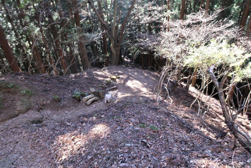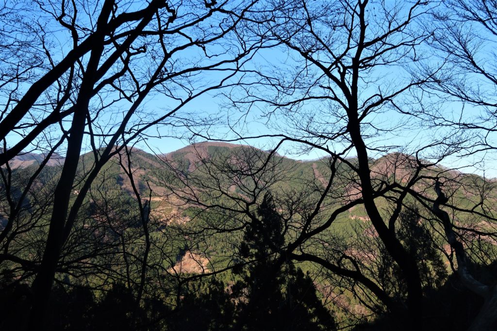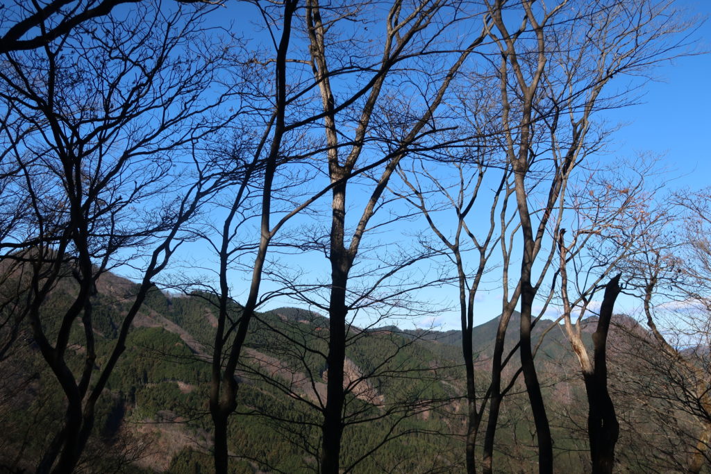 平坦で広いスペースがあり、ベンチも用意されていて、ひと息つくのにちょうどいいポイントです。木々の合間から少し眺望があります。下った先が、正丸駅からの直登ルートとの合流地点となっています。
