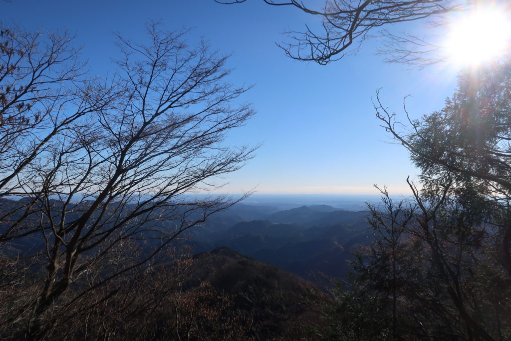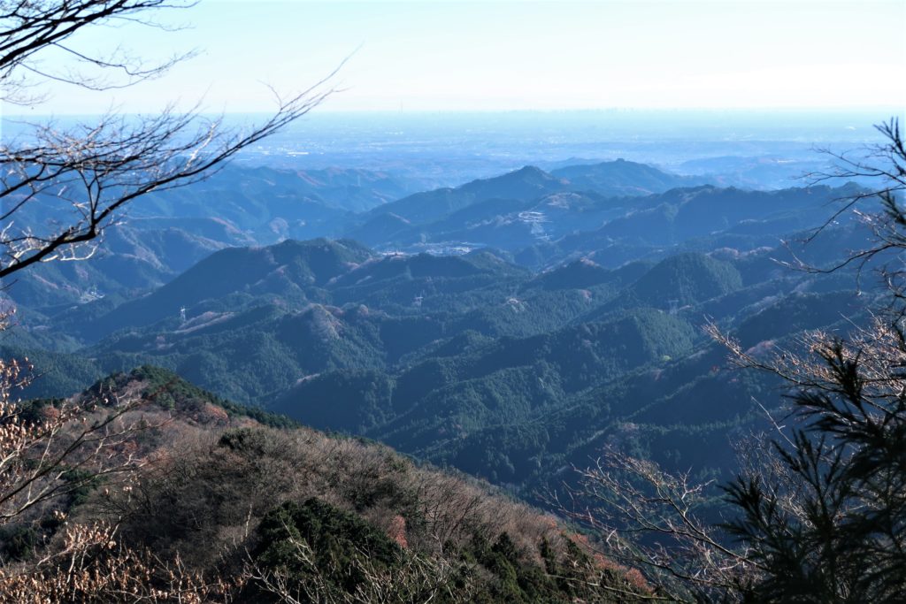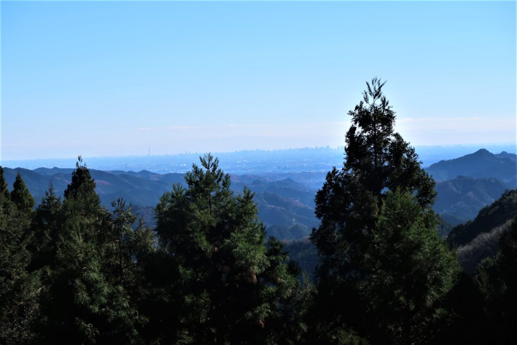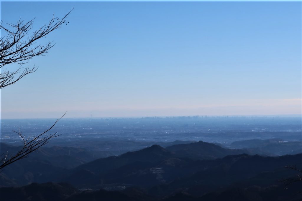 山頂は狭いですが、その手前の大きな岩のあるポイントには広いスペースがあり、眺望の良さも魅力のひとつです。天気の良い日には東京都心部方面、スカイツリーまで望めます。