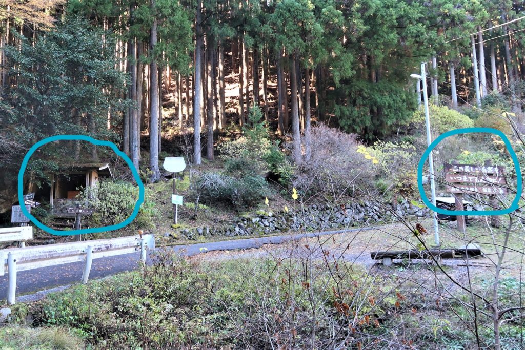 「この美しい自然をいつまでも大切に!」の看板と小さな祠が目印となります。