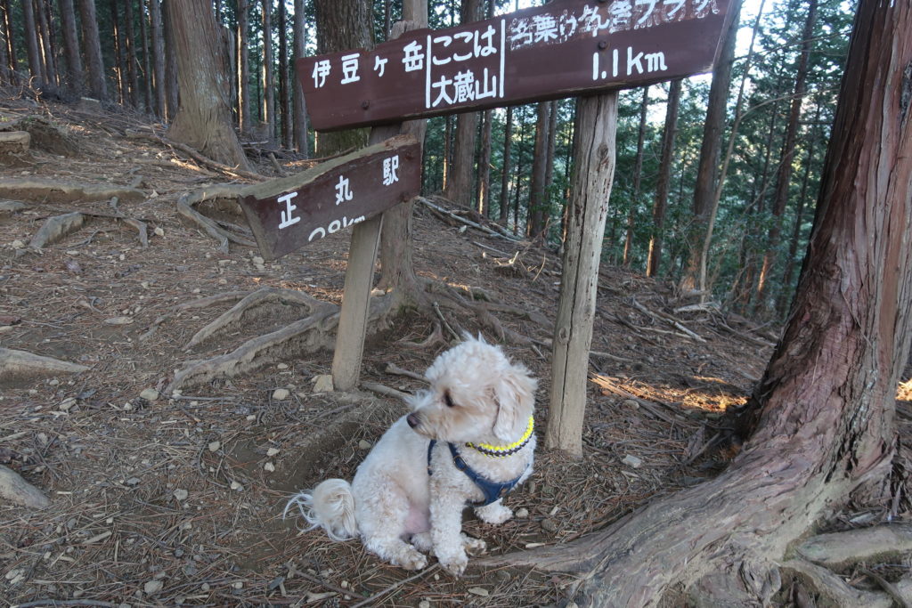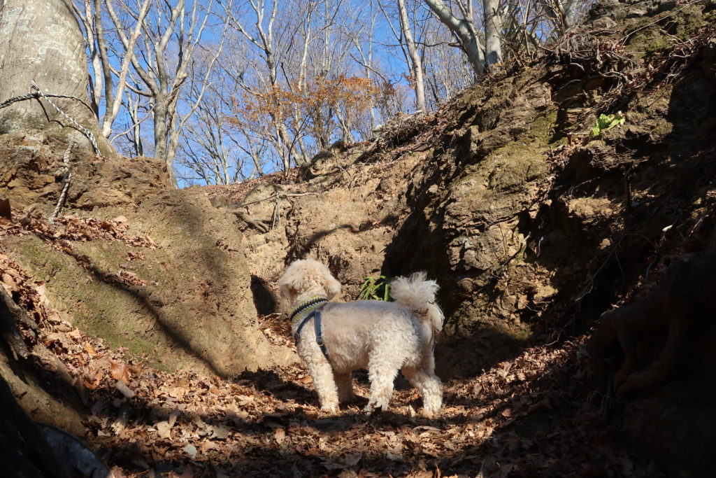 伊豆ヶ岳周辺の登山道は、アップダウンの厳しい個所があります。その他にも犬登山としては難所がいくつかありましたが、全体的には気持ちのいいハイキングコースとなっています。